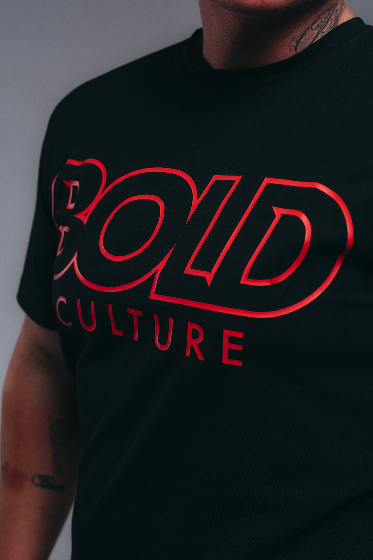 Introducing our premium 95% cotton, 5% spandex fitted T-shirt. Featuring a bold large front chest logo, this versatile piece effortlessly combines comfort and style. Whether you're hitting the gym or hanging out with friends, this tee is designed to elevate your look with its perfect fit and on-trend appeal. Experience the ultimate blend of comfort and fashion with our 95/5 fitted T-shirt.